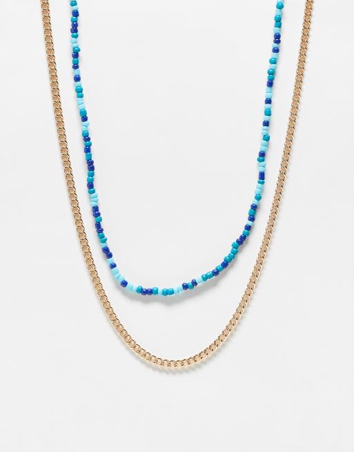 Faded Future pack of 2 beaded and chain festival necklace in gold