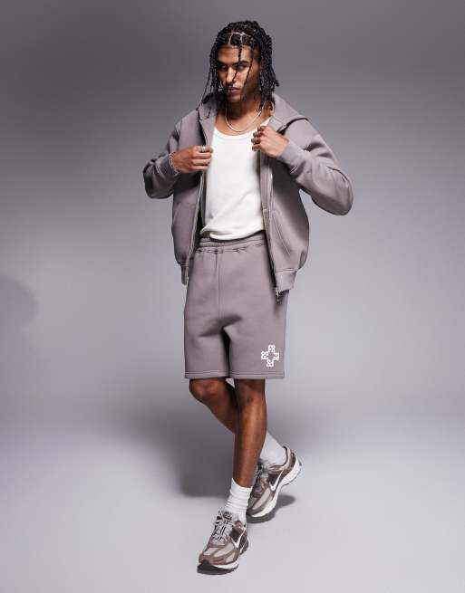 Faded Store monogram logo 320gsm shorts in brown - part of a set