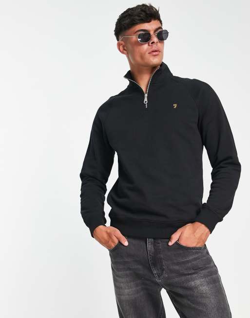 Farah Jim half zip heather cotton sweatshirt in black