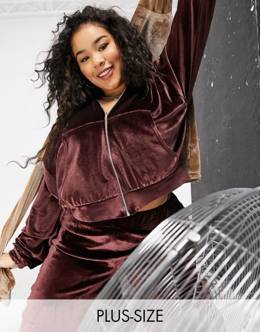 Fashionkilla Plus Exclusive velour hoodie and sweatpants set in chocolate