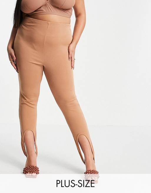 Fashionkilla Plus stirrup leggings in toffee