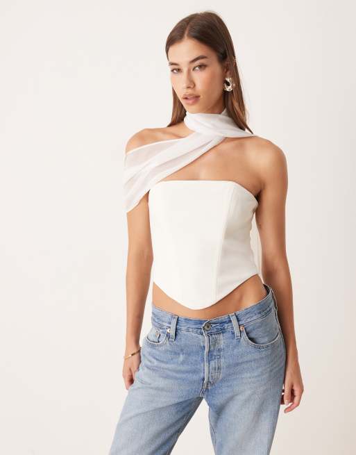 For Love & Lemons Capri corset top with chiffon scarf in white