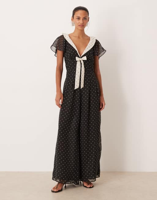 For Love & Lemons sailor collared jumpsuit in mono polka dot print