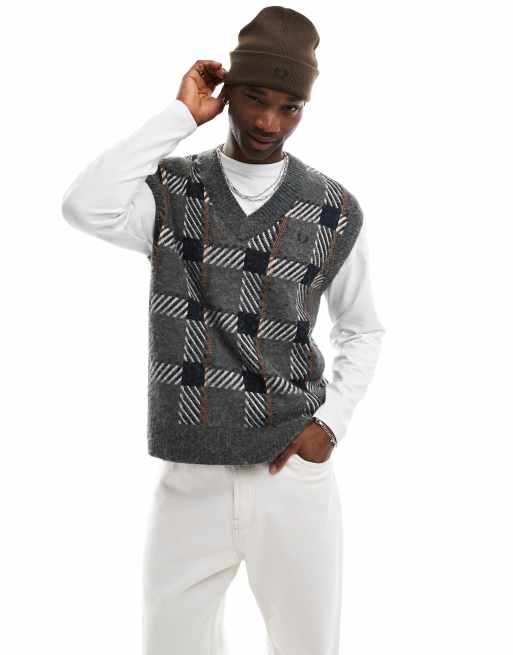 Fred Perry knitted check vest in gray