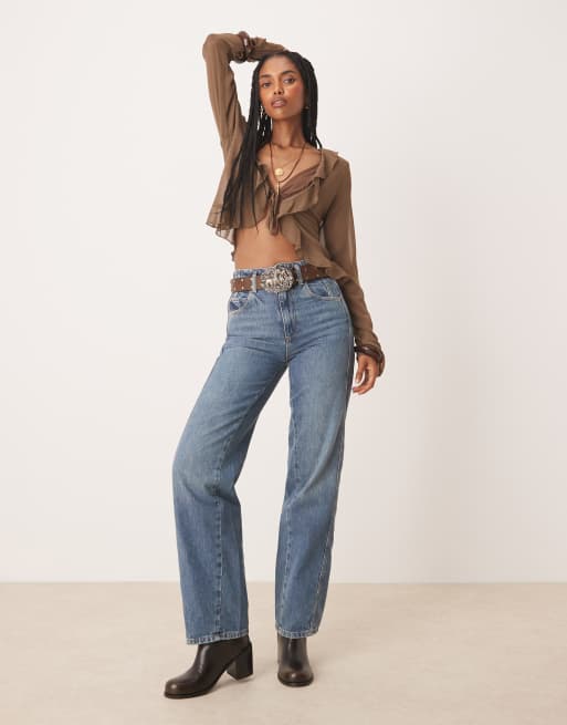 Free People Aster straight leg jeans in mid wash blue
