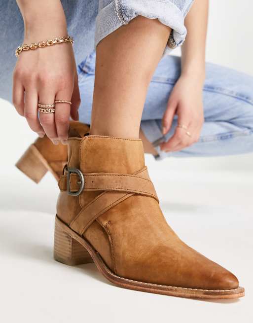 Free People back loop ankle boots with cross straps and buckle in tan