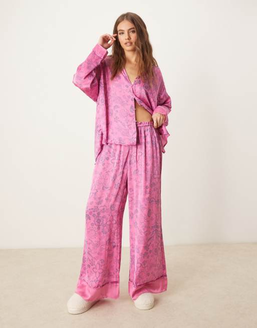 Free People dreamy days printed silk pajama set in pink