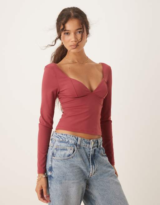 Free People duo corset long sleeve top in earth red