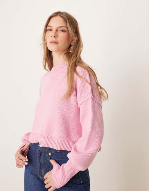 Free People easy street cropped sweater in rose pink