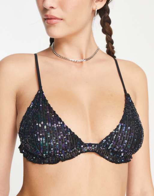 Free People Gold Rush sequin bralette in midnight blue