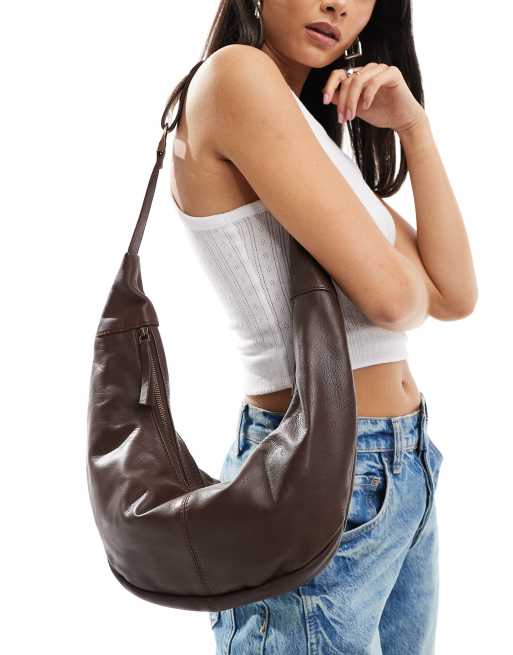 Free People Idle Hands leather cross body sling bag in chocolate