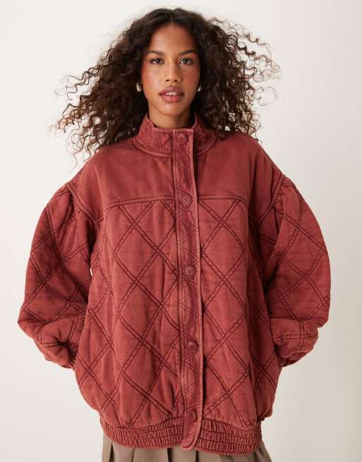 Free People Juno quilted jacket in burgundy