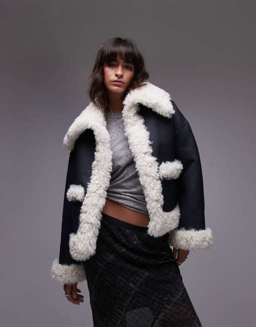 Free People kiki sherpa oversized jacket in black and cream