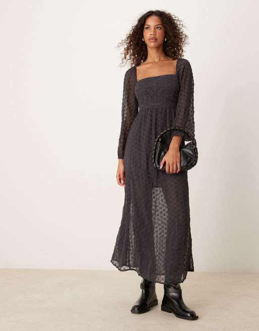 Free People lace overlay puff sleeve midaxi dress in dark gray