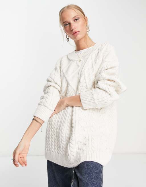 Free People Leslie cable knit oversized sweater in ivory