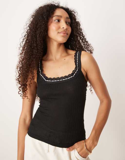 Free People only you ribbon detail tank top in black
