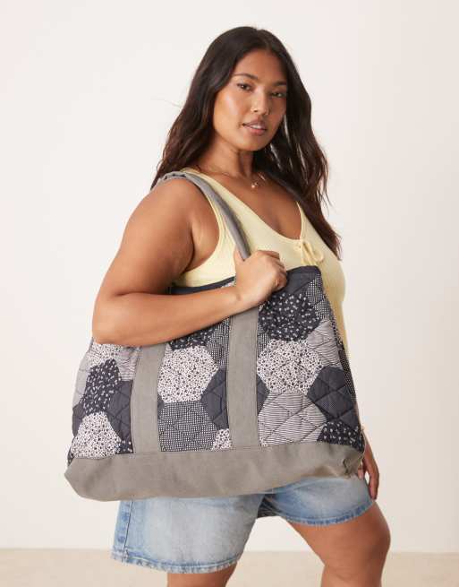 Free People pippa patchwork tote bag in navy blue