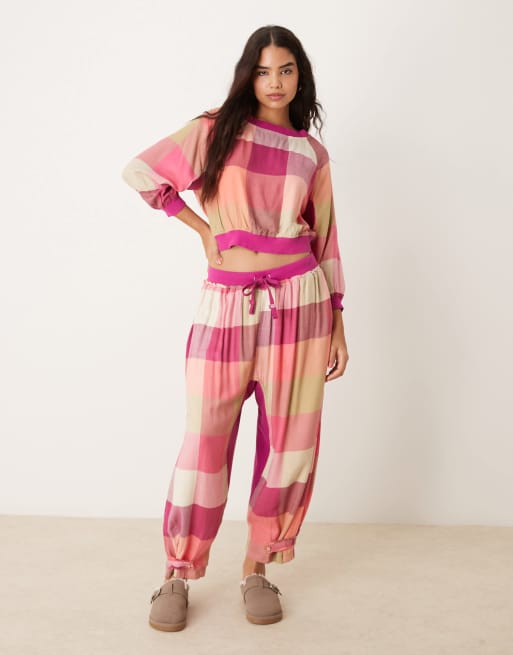Free People plaid flannel pajama pants in pink multi - part of a set