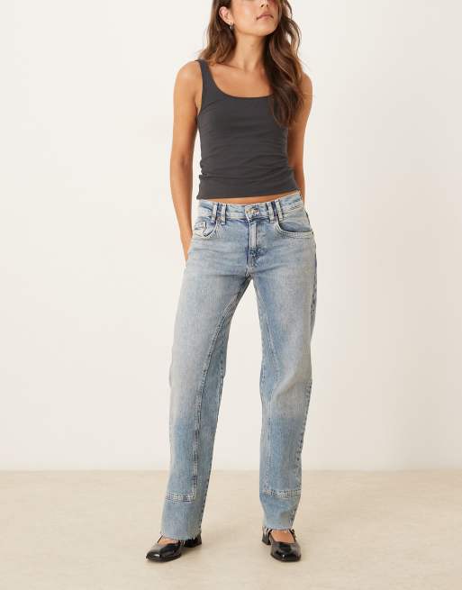 Free People risk taker mid rise straight leg jeans in light wash blue