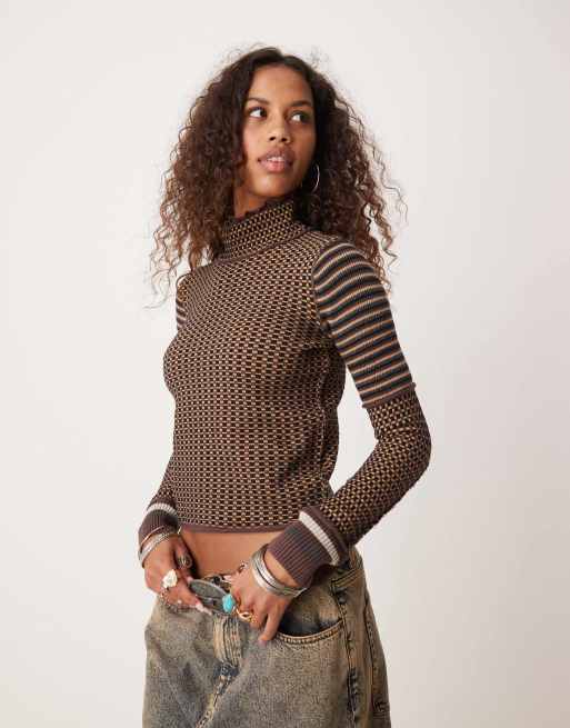 Free People striped long sleeve turtle neck sweater in multi