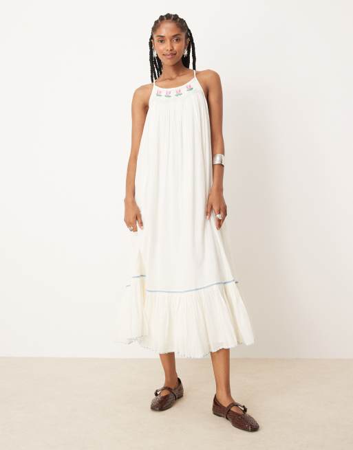 Free People tip toe tulip embroidered midaxi dress in ivory