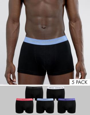 French Connection 5 Pack Boxers with Color Waistband