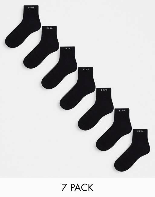 French Connection 7 pack trainer socks in black