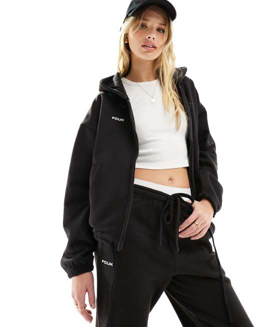 French Connection FCUK boxy zip front hoodie in black - part of a set