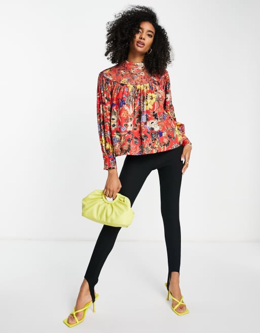French Connection long sleeve floral smock blouse