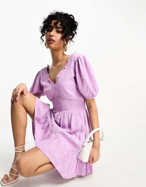 French Connection mini tea dress in lilac seersucker