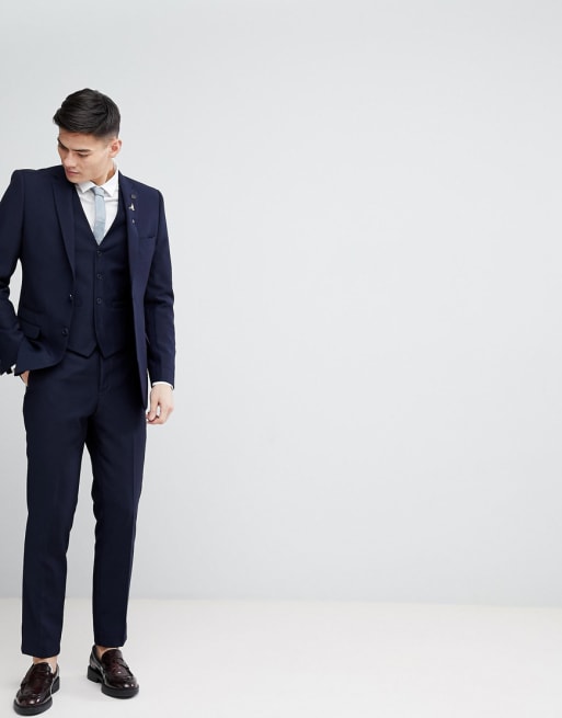 French Connection Navy Birdseye Weave Slim Fit Suit