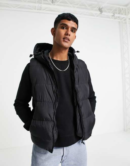 French Connection padded hooded vest in black