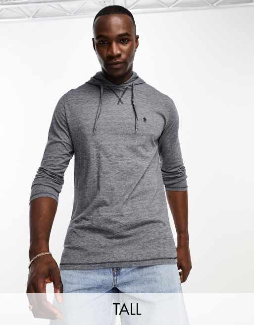 French Connection Tall hooded long sleeve micro feeder top in navy & white