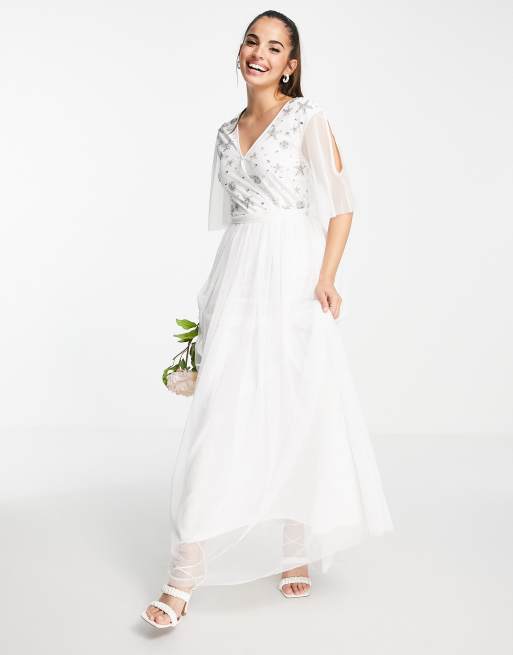 Frock and Frill Bridal embellished midaxi dress in pearl pink