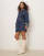 Ghospell bow detail plaid denim mini dress in blue