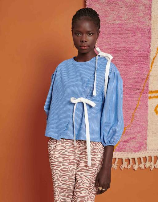 Ghospell bow detail top in blue stripe