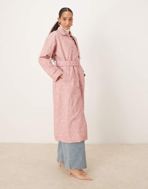 Ghospell matte PU belted trench coat in pink