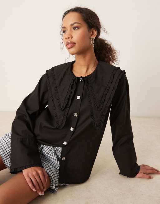 Ghospell oversized collar shirt in coal black