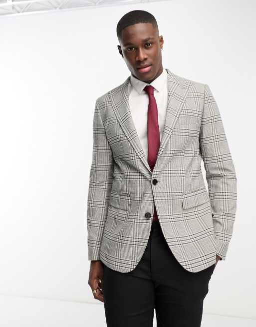 Gianni Feraud skinny suit jacket in gray check