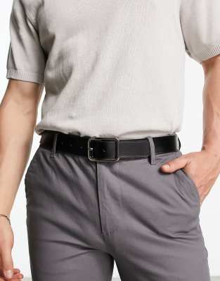Gianni Feraud smooth leather belt with rounded square silver buckle in black