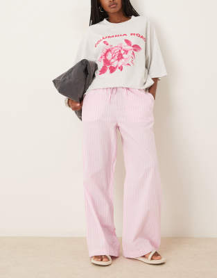 Gina Tricot cotton poplin relaxed fit pants in pink stripes