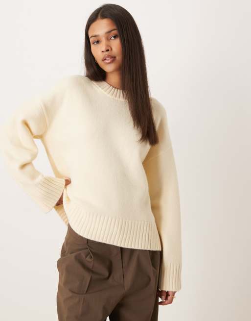 Gina Tricot crew neck knit sweater with wide sleeves in buttermilk yellow