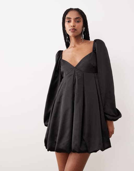 Gina Tricot long sleeve sweatheart neck bubble mini dress in black