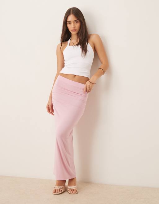 Gina Tricot Soft Touch jersey maxi skirt with ruched side detail in pink - part of a set