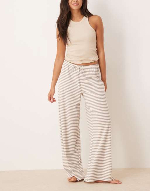 Gina Tricot supersoft jersey wide leg pants with drawstring waist in beige and white stripes