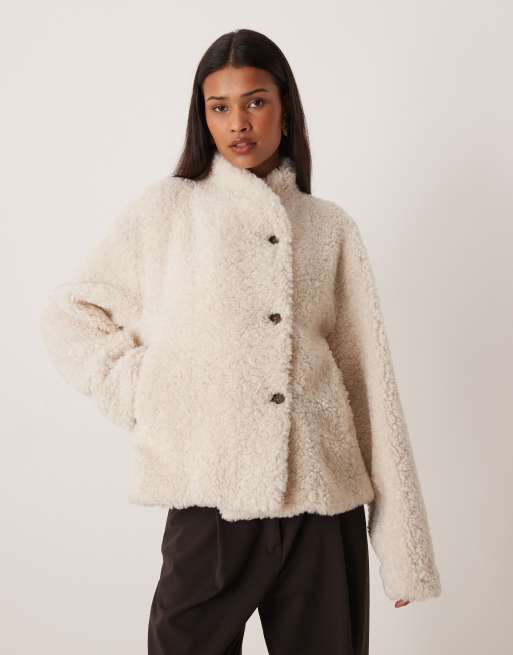Gina Tricot teddy jacket with high neck in off white