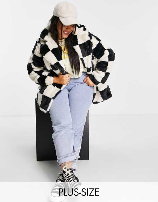 Girlfriend Material Curve coat in checkerboard faux fur