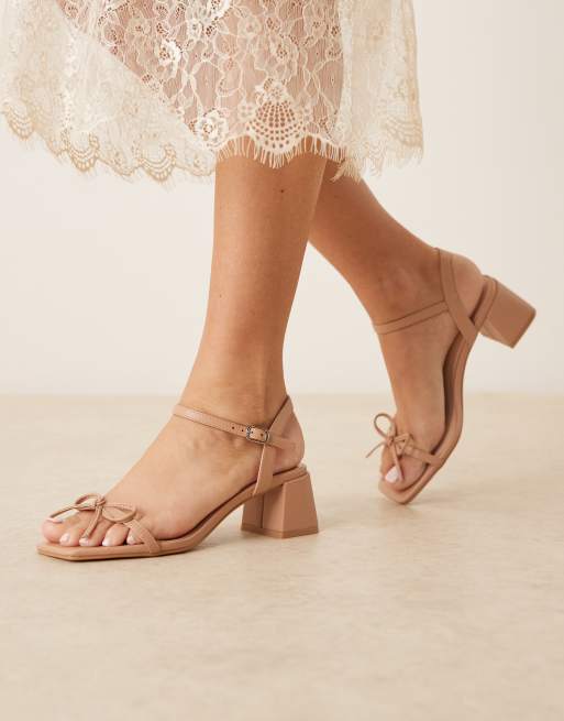Glamorous Wide Fit low block heeled sandals in beige