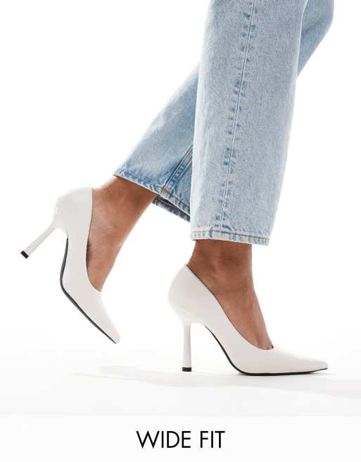 Glamorous Wide Fit pointed high heeled pumps in white