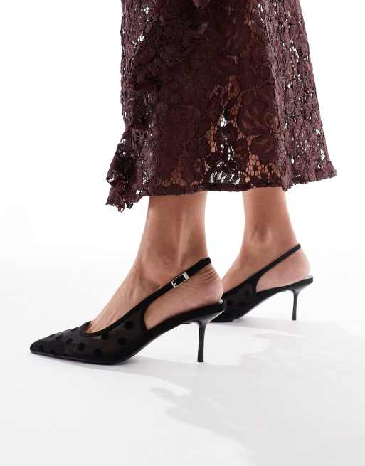 Glamorous Wide Fit slingback pumps in mesh black polka dots
